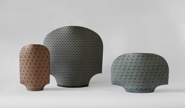 A ceramicist since 2008, Hélène creates pure and graphic forms that are inspired by a range of sources and inspiration, from ancient cities and the clean lines of art deco architecture to the observation of the plant and mineral world. In working the surface of each form, she transforms the appearance of the clay into another material so that the viewer's first impression is that the artwork has been constructed with another material such as textiles, lace or basketry.